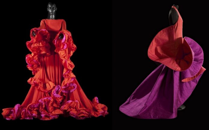 Un altro abito famoso è Oceano. Un capolavoro di 200 metri di seta, 1500 pezzi di stoffa e con 37 toni del blu. La capacità di Capucci nel lavorare la seta è unica. Ha creato svariati pezzi che fanno parte ora di un archivio preziosissimo per la storia della moda. E fino al 2 novembre 2025 si potrà avere l’occasione di esplorare l’operato di questo talento unico dell’Alta Moda italiana.