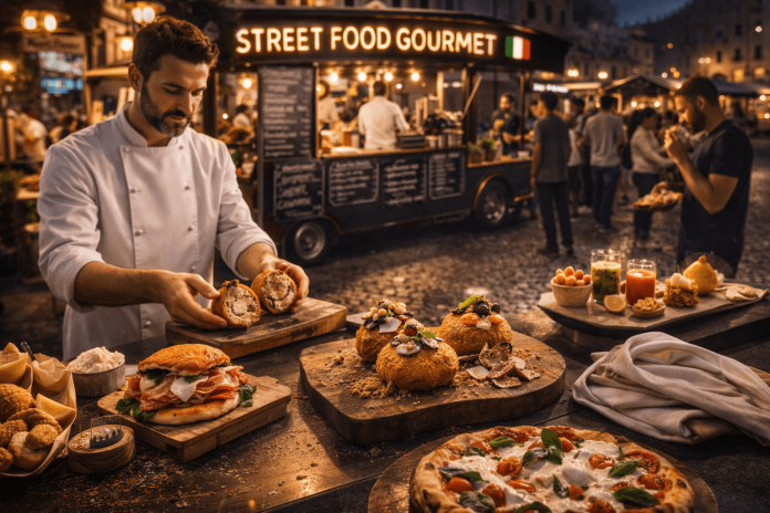 Nel 2026, lo street food italiano si trasforma, evolvendo in una versione gourmet che unisce tradizione e alta qualità. I piatti tipici della cucina di strada vengono reinterpretati utilizzando ingredienti premium e tecniche culinarie avanzate, offrendo un’esperienza gastronomica nuova e raffinata.